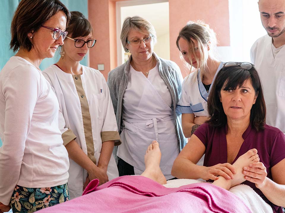Diverses expériences professionnelles en Réflexologie Plantaire et en milieu hospitalier, titulaire des certificats en Gestion du Stress, Auriculothérapie et Shiatsu, elle partage désormais son savoir au sein de son propre Centre de formation.